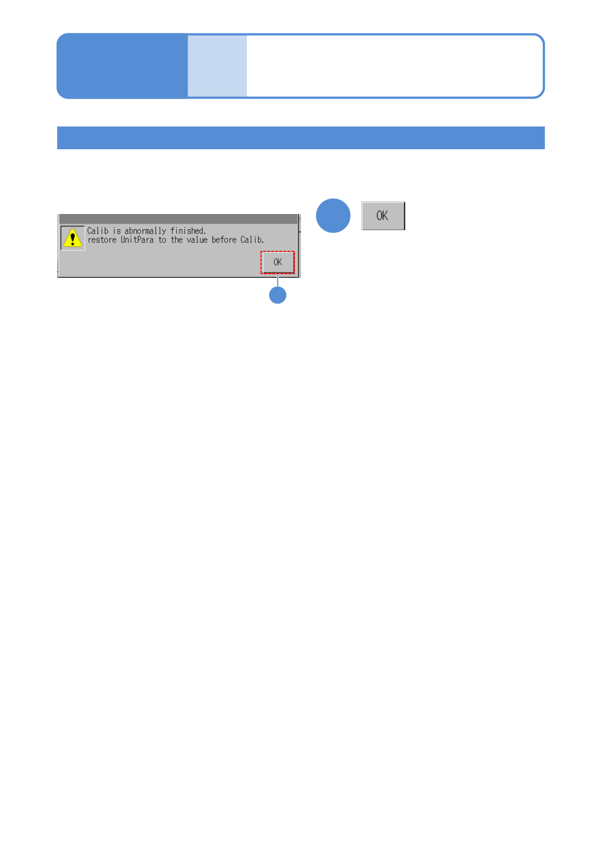 When calibration abends, the following screen is displayed. The calibration results are not saved.