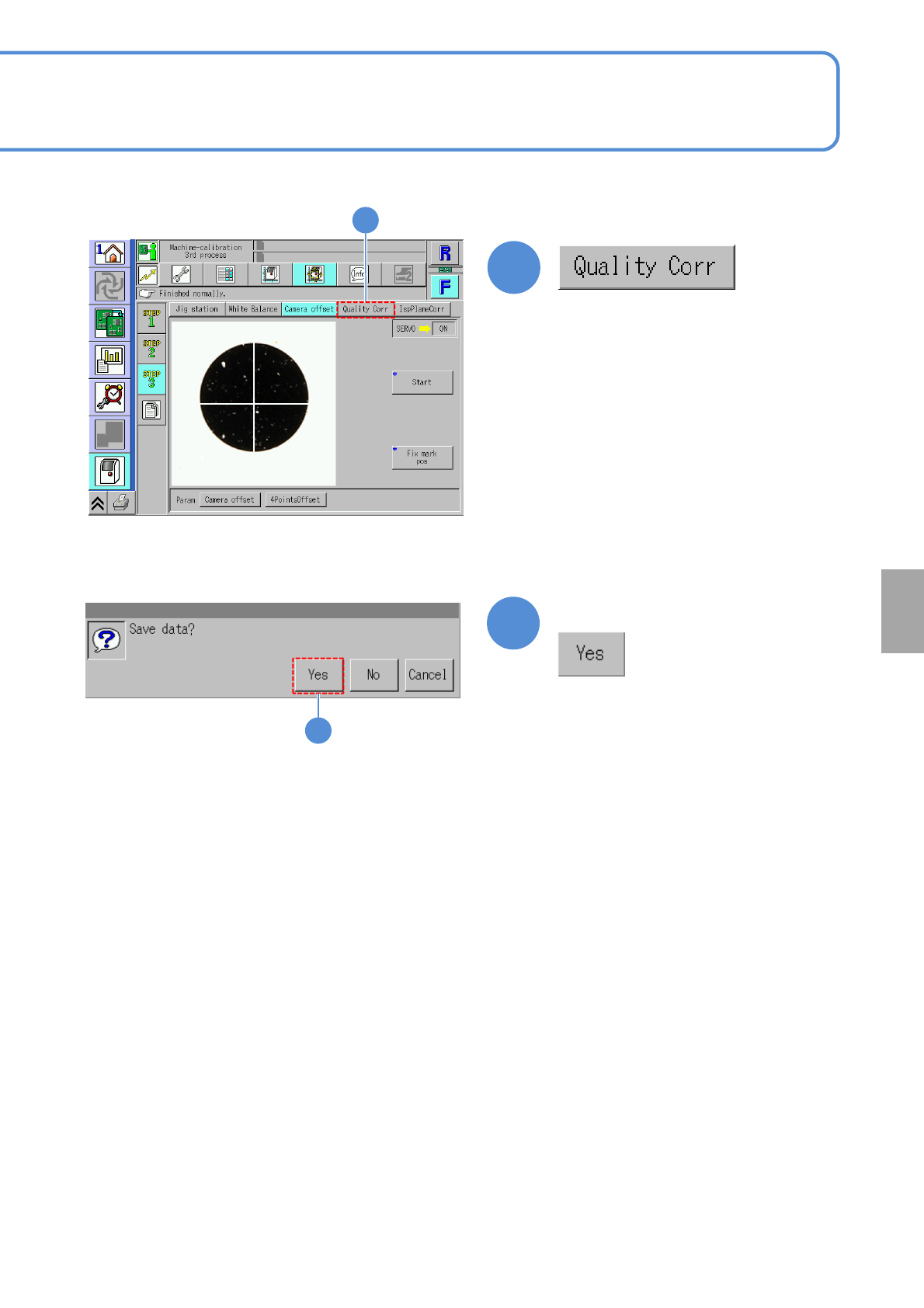NPM-W 2 EJM7DE-MB-13M-00 13-15 -2 6 6 7 7 8 8 (The screen for the measured camera offsets (offsets of the four standard posts in reference to the mark 1) is displayed. Camer a of fset 2 (2D inspection head) Maintenance 1…