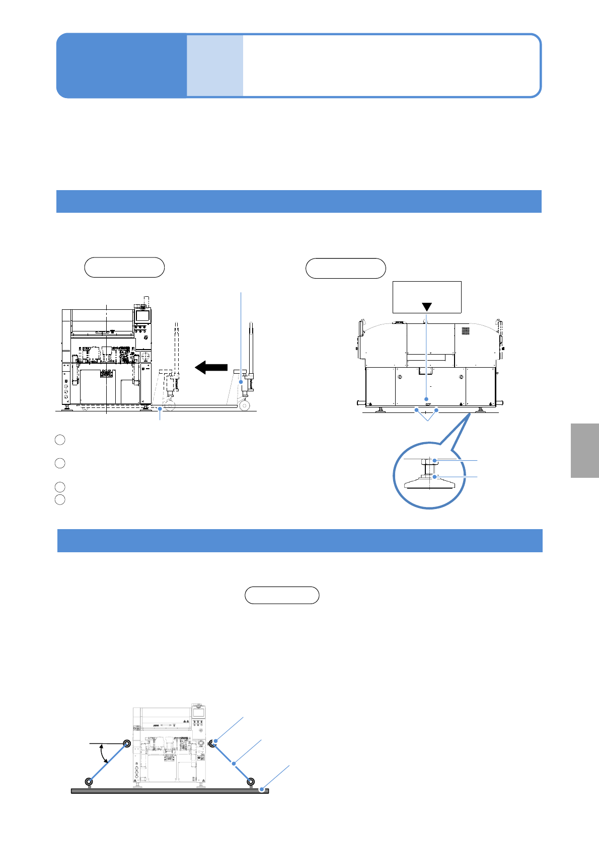 ●Use eyebolts for fixing the machine to a cart or others. An angle