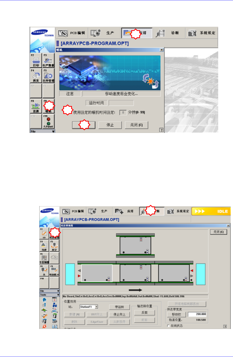2. 在’Conveyor Utilities’对话框中投入 Test PCB,确认各 Station 的基板检查传感器