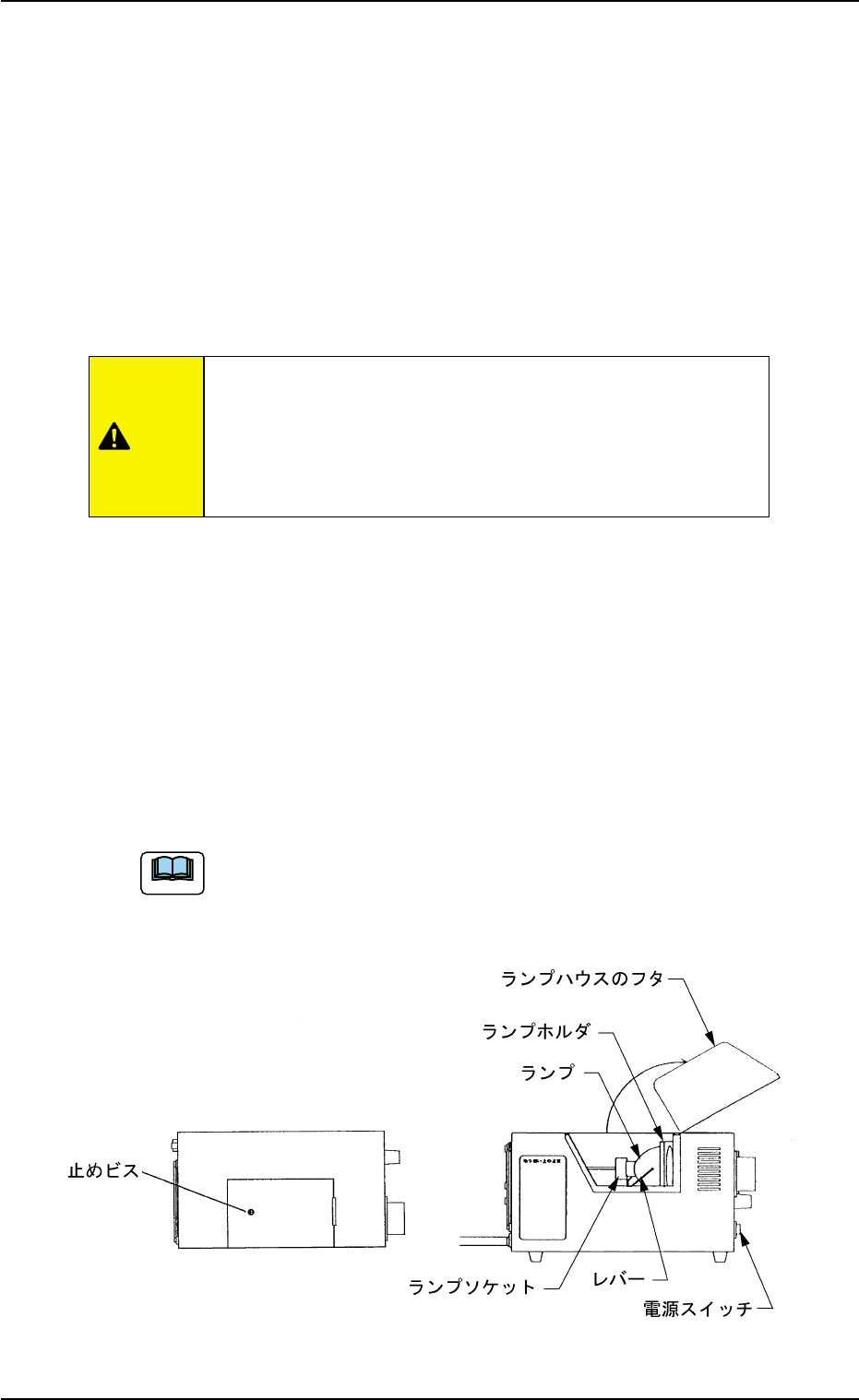 • 光源装置本体上面にある止めビスを緩めランプハウスのフタを開け