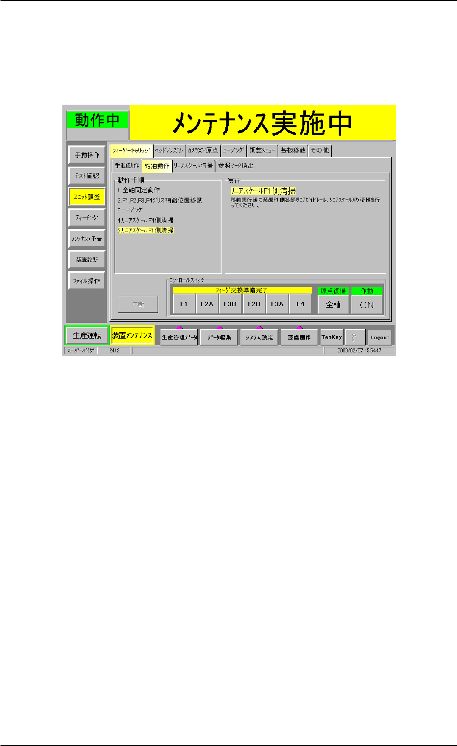 フィーダキャリッジ 3、4 が F1 側へ移動し、以下の画面が