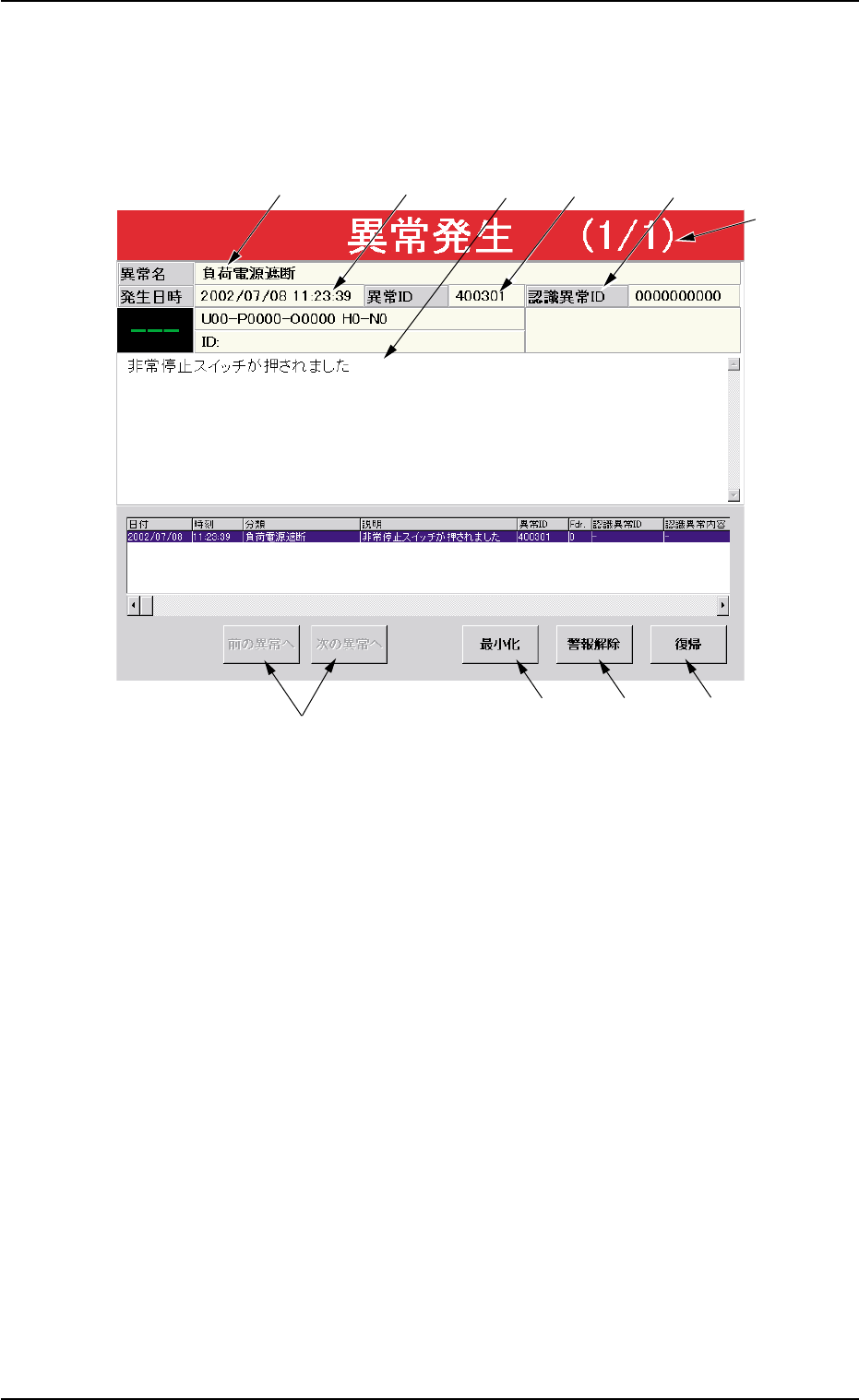 このボタンを押すと、異常表示画面が最小化し、画面の左下に移