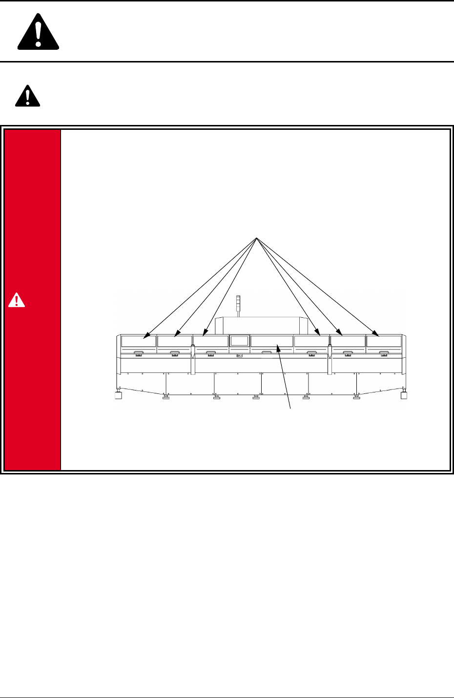 フィーダキャリッジに人や物が接触すると、重大な事故となります。