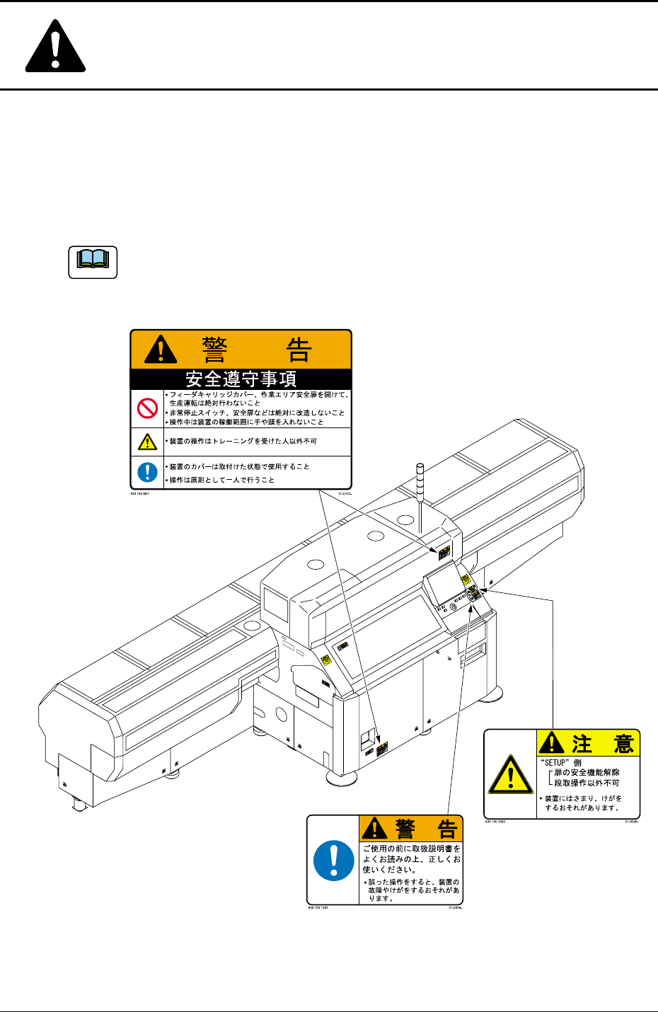 警告ラベルは、危険か所または注意か所に貼付けてあります。