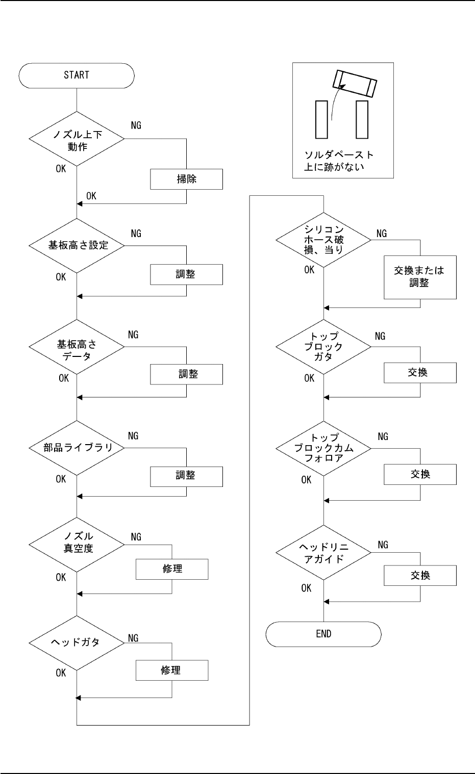 本装置以外の要因として考えられることは、部品形状、基板の状態、ソ
