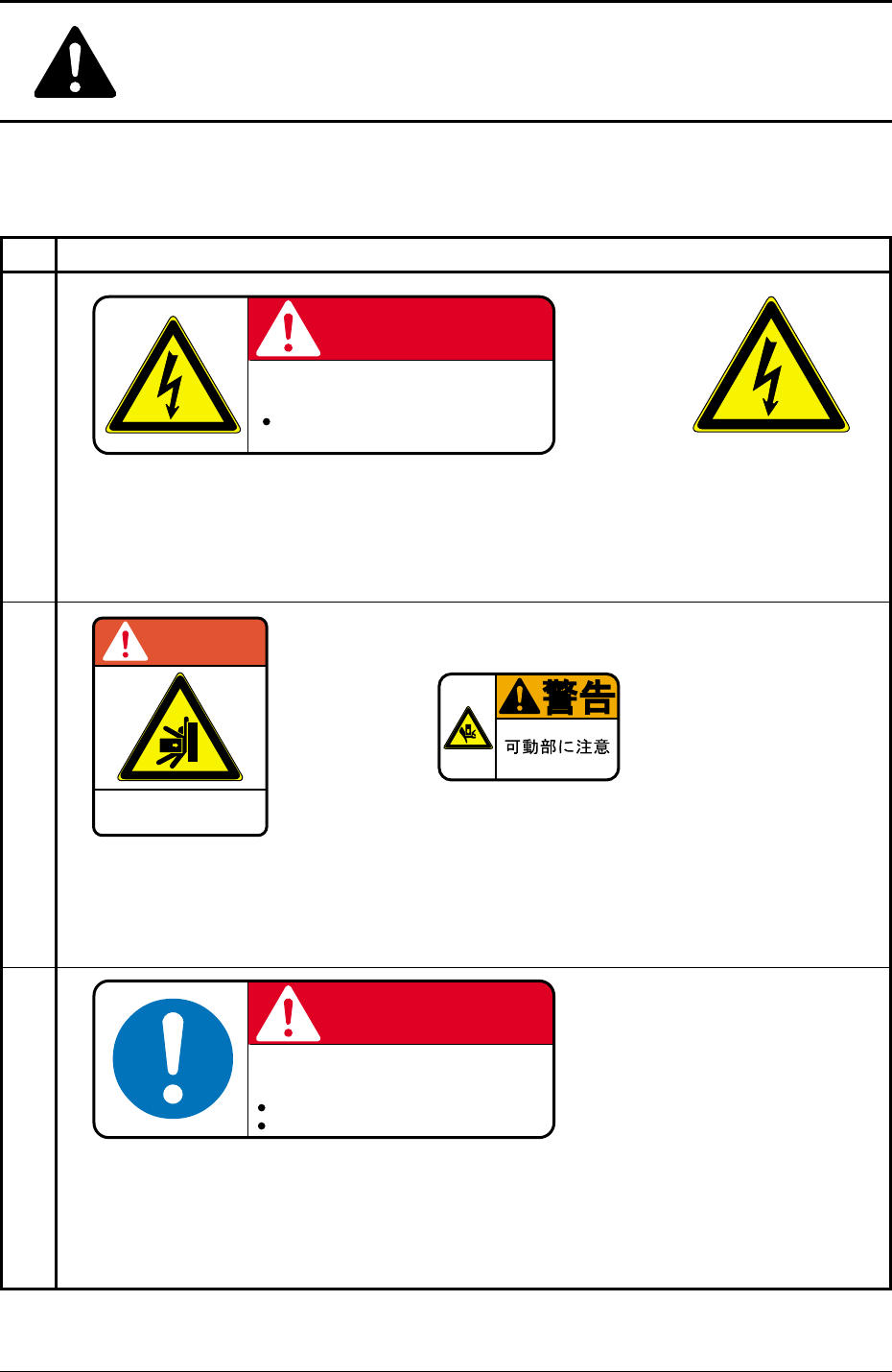 誤った操作をすると、装置の故障やけがなど、重大な事故になるおそれがあります。
