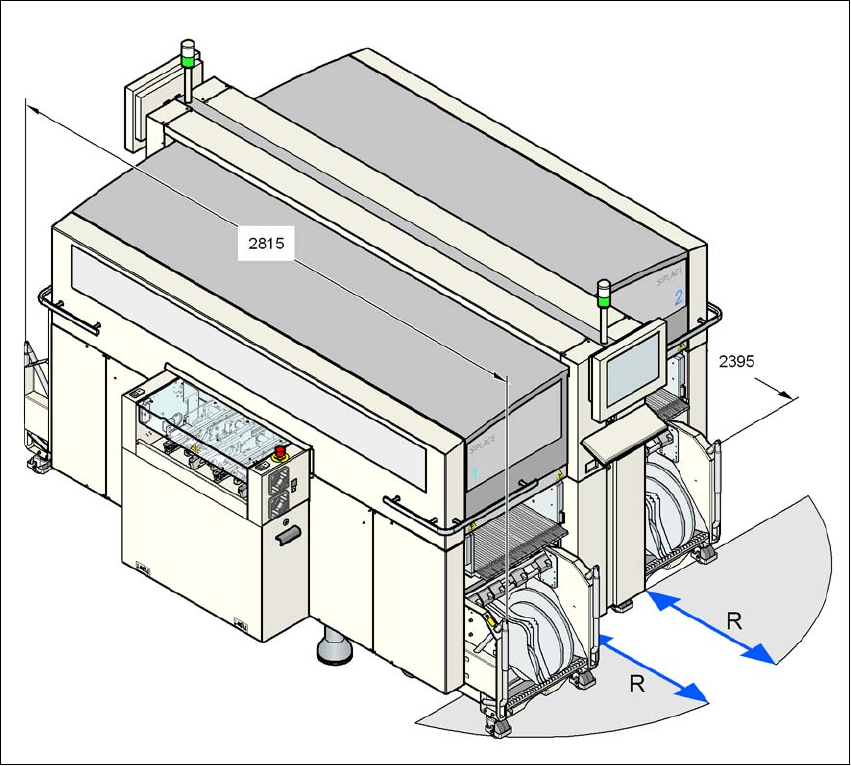 3 Tekniska data för automaten Sköt selinstruktion SIPLACE X-serie 3.3 Mått och vikt Från programversion SR.605.xx Utgåva 07/2008 SE 116 3.3.4.3 Rangeravstånd för komponentvagnarna vid X2-automaten 3 3 Bild 3.3 - 7 Ranger…