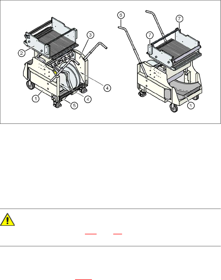 Komponentvagnen består i princip av stativ, komponentbord för anslutning till matare, bandrulle-
