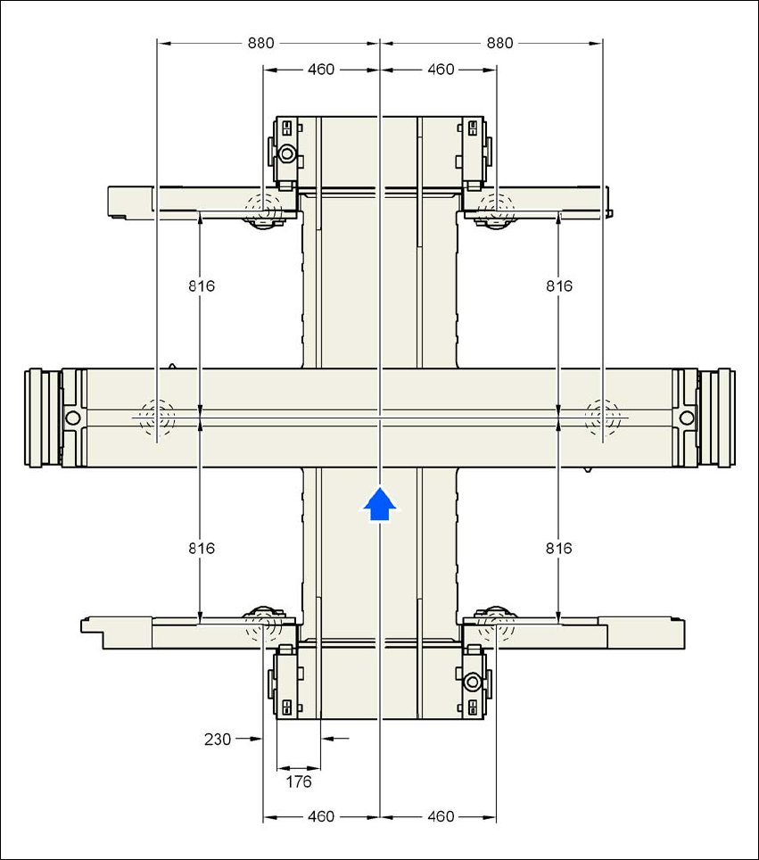 Bild 4.3 - 22 Avståndsmått för maskinfötterna och den fasta högra transportkanten för kretskorts enkeltransport i milli-
