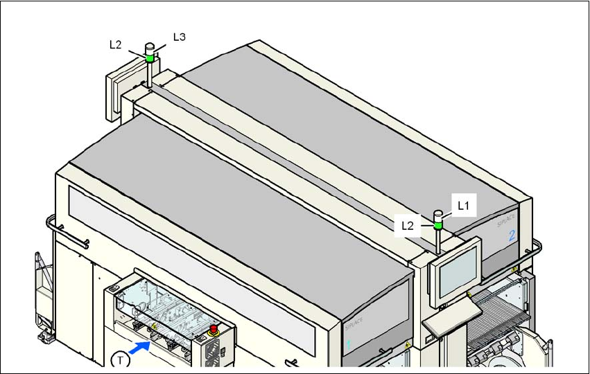 5 Opratörspersonalens uppgifter Sköts elinstruktion SIPLACE X-serie 5.3 Signallampa för driftstillstånd beaktas Från programversion SR.605.xx Utgåva 07/2008 SE 328 – Nedre felindikeringslampan L3 (vita) blinkar Ett eller…