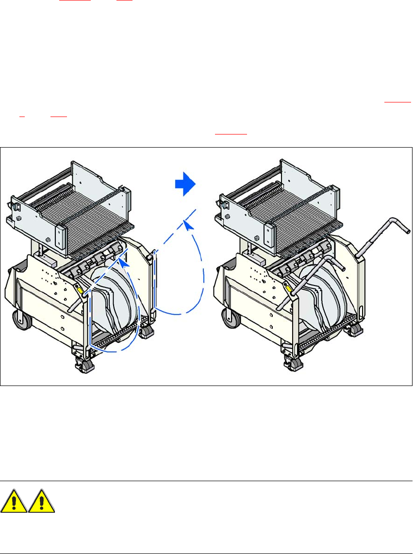 → Dra komponentvagnen med båda händerna på handtagen, ut ur automaten.