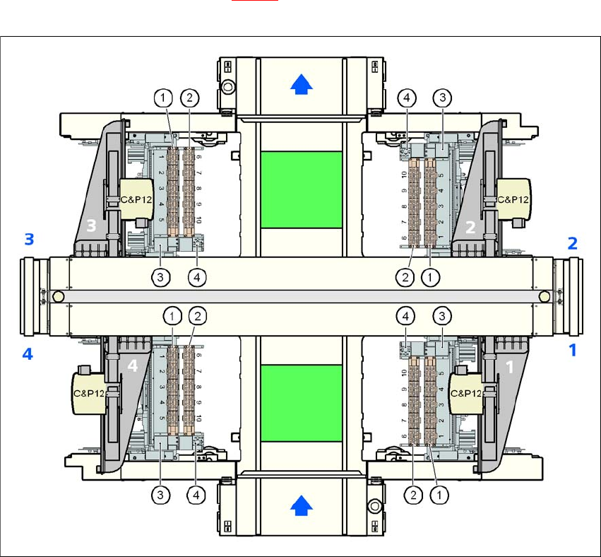 Bild 6.1 - 10 Placering av munstycksväxlare för 12-segments-Collect&Place-huvudet på X4-automaten