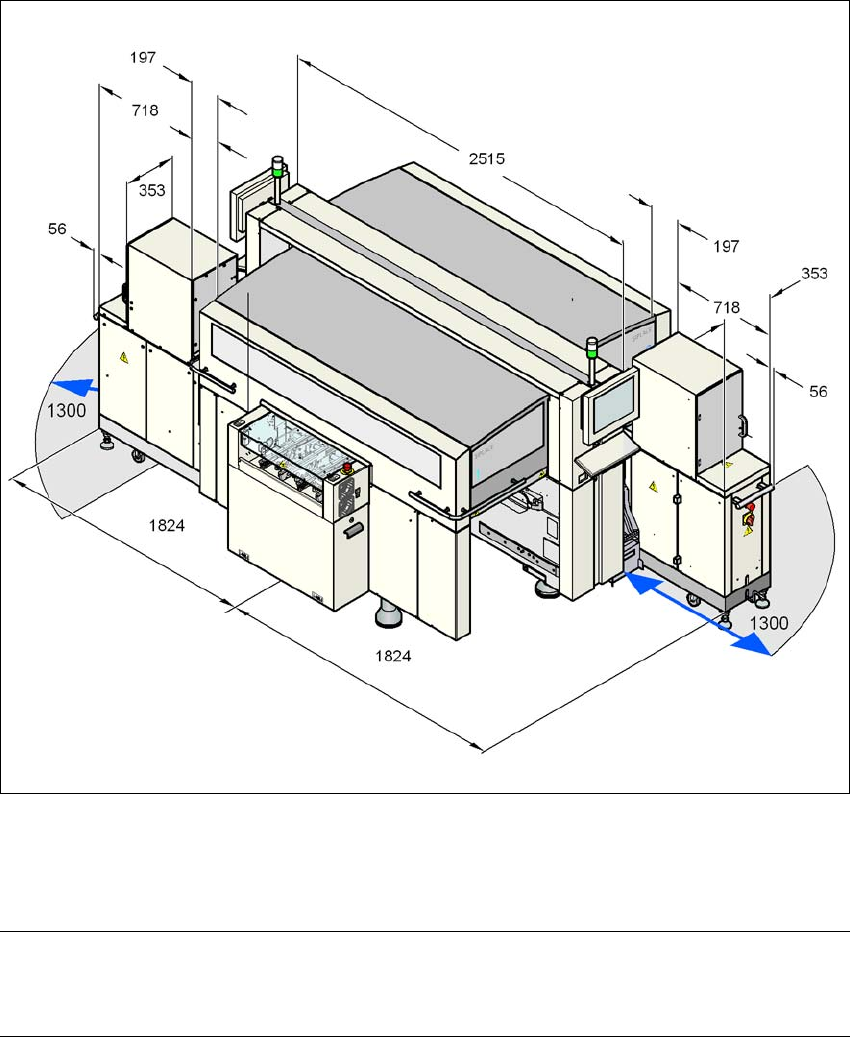 Bild 6.4 - 3 Dimensioner på X2-automaten med Waffle-Pack-växlare i millimeter