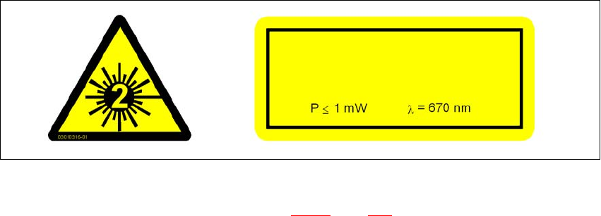 Bild 6.18 - 1 Kännetecken för laserklass 2 för sensorn