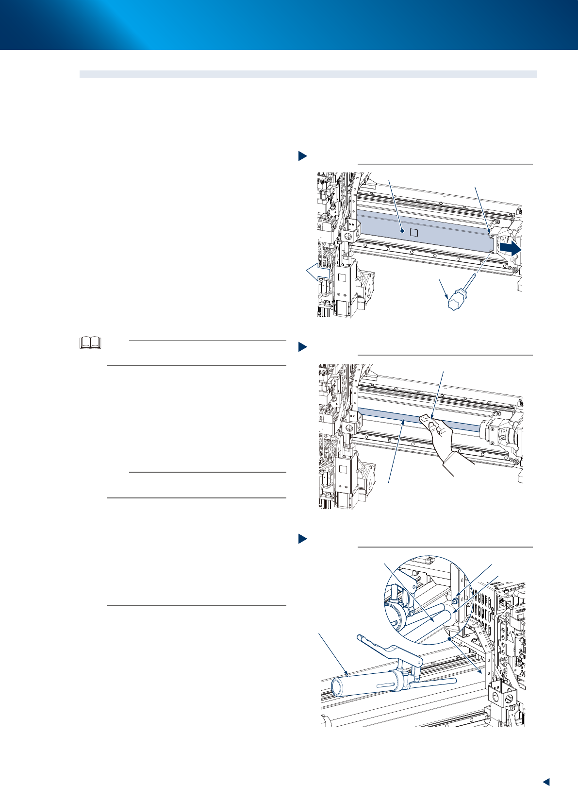 3. 再将贴装头单元移到另一端,擦去滚珠丝杆
