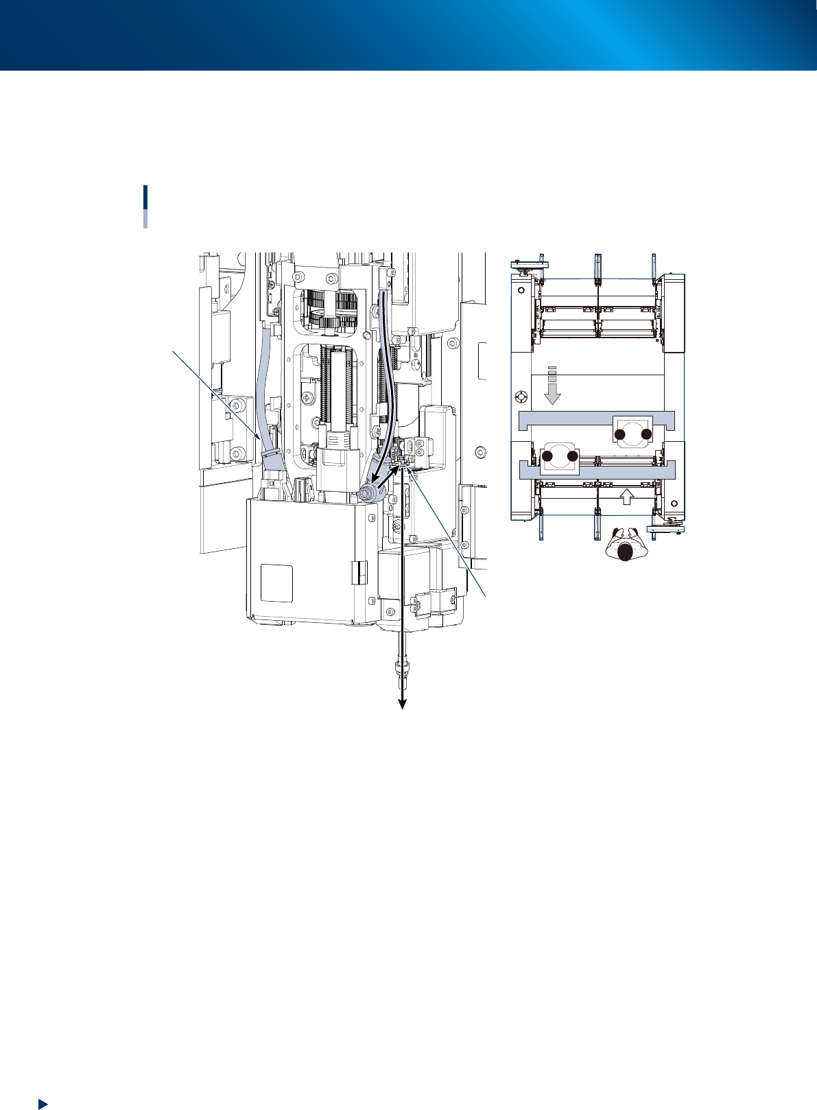 从贴装头正面看 RM 贴装头单元时,右侧的空气软管为压杆 1 的气路,相反侧的空气软管为压杆 2 的气路。
