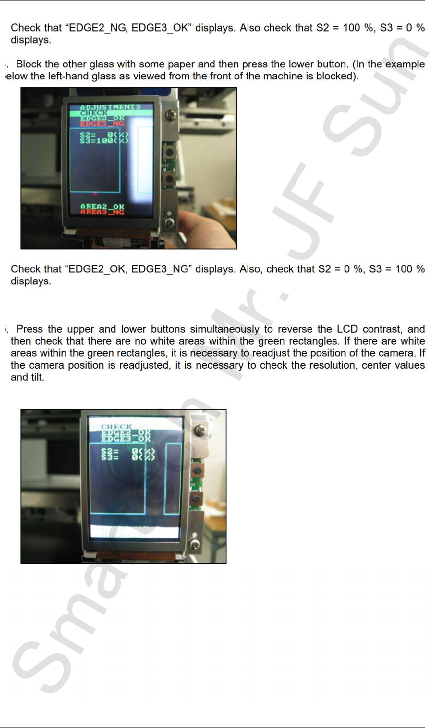 Check that “EDGE2_NG, EDGE3_OK” displays. Also check that S2 = 100 %, S3 = 0 %
