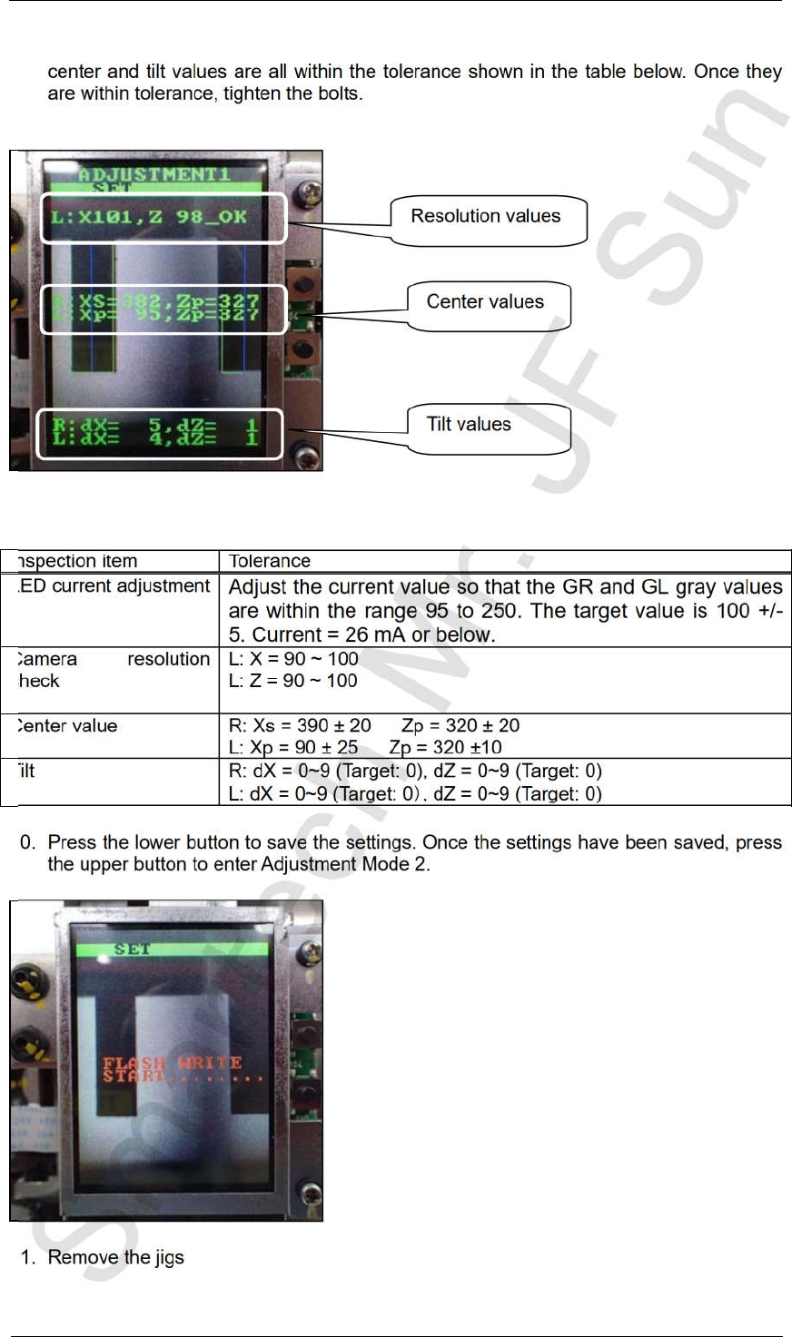 values, resolution and tilt are within tolerance.