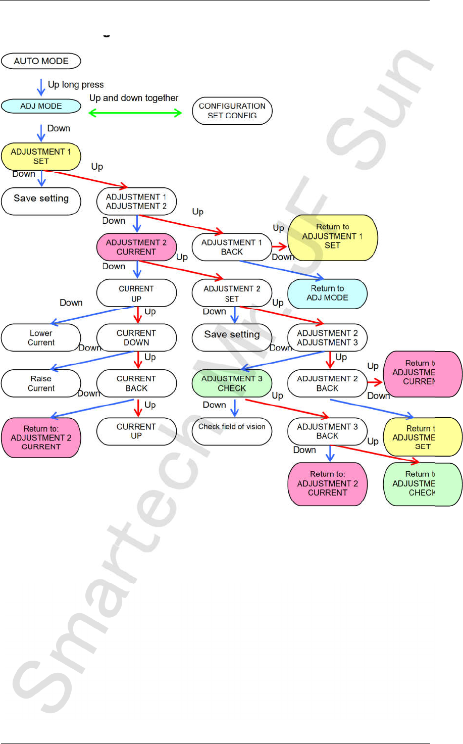 8. Press the lower button to display “ADJUSTMENT 2 CURRENT”.