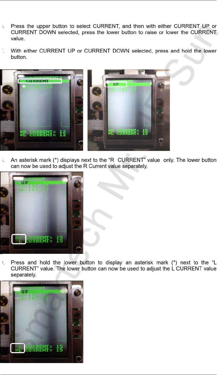 CURRENT” and “L CURRENT” values. The lower button can now be used to adjust