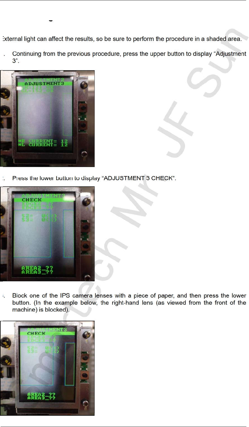 2. Press the lower button to display “ADJUSTMENT 3 CHECK”.