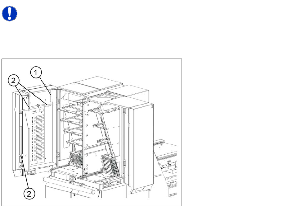 X Entnehmen Sie die Handkurbel (1) der linken Schutztüre.