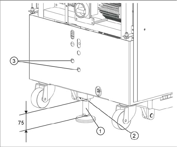 X Drehen Sie den Maschinenfuß ungefähr auf 75 mm heraus. Ziehen Sie die Kontermutter an.