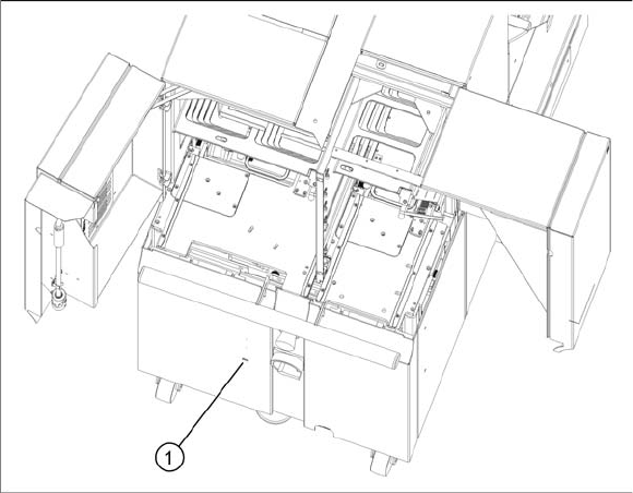 X Bauen Sie die linke vordere Abdeckung mit der Aussparung für die Grundhöhen-Skala (1) ab.