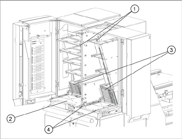 Flächenmagazine einzeln gewechselt werden. Sollen Kassetten gewechselt werden, fährt der Turm in