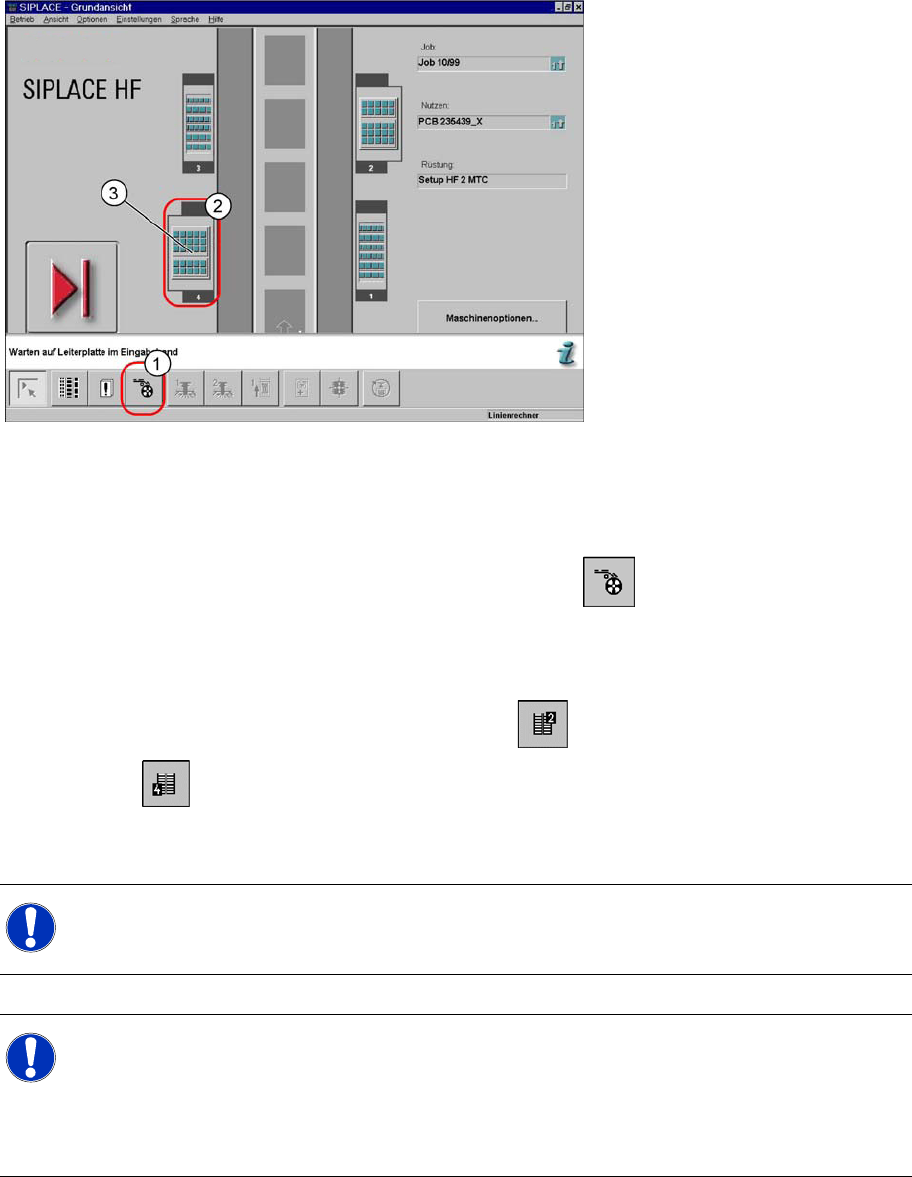 Aufgaben fü r das Bedienper sonal Grundansicht mit MTC2 Bestück- und Einzelfunktionen des MTC2 ( SW 50x) SIPLACE MTC2 Bedienungsanleitung 83 5.3 Bestück- und Einzelfunktionen des MTC2 (SW 50x) 5.3.1 Grundansicht mit MTC2…