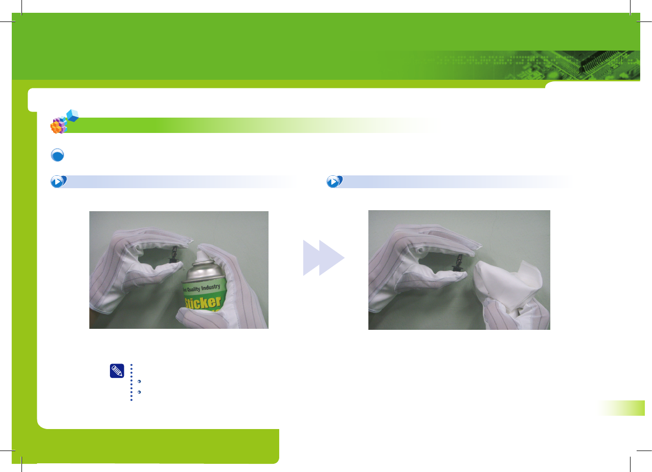 SM 42 1 Ma int en an ce Ha nd bo ok 14 2. 吸嘴清扫 清除吸嘴内径 1 Ai r gu n 残存异物 ( solder paste 等) 内径疏通用别针 供压喷射方向 Air gun 别针插入 方向 一分钟后 1 . 喷射推荐的洗净液 2 . 气枪空压喷射 3 . 插入内径疏通用别针(清除异物) P ART II. 日常检验 检验 在使用风枪时如果不戴保护眼镜可能会伤害到眼睛。请在使用风枪时戴上保…