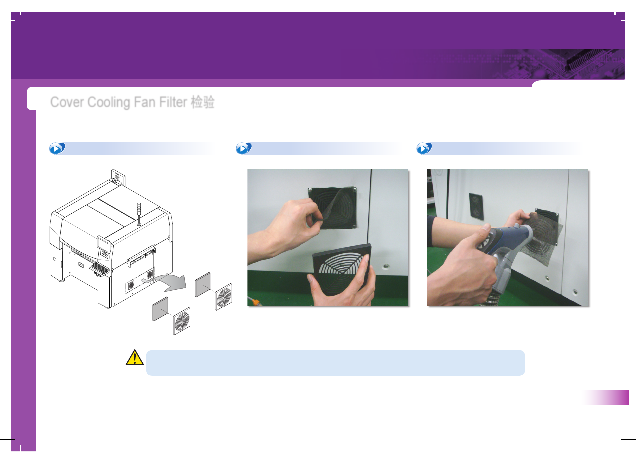 1. 设备左侧的Filter盖分离 3. 使用真空清扫器清扫Filter2. Filter分离
