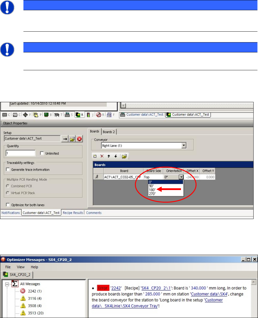 If this adaption of the board orientation is not performed, the following error message (example) is
