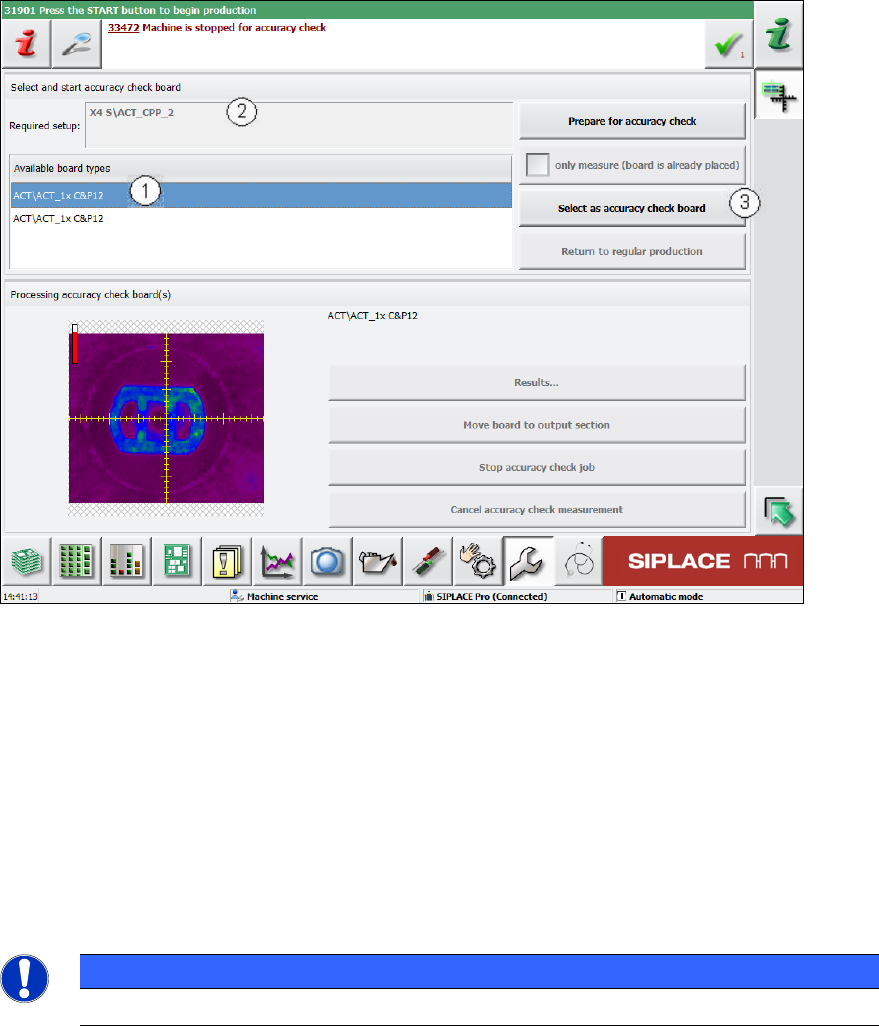► Confirm the selection of the board and click the Select as accuracy-check-board button (3).