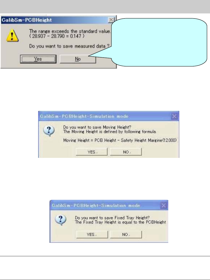 After saving the data of the “PCB Height”, the message appears asking you to save the