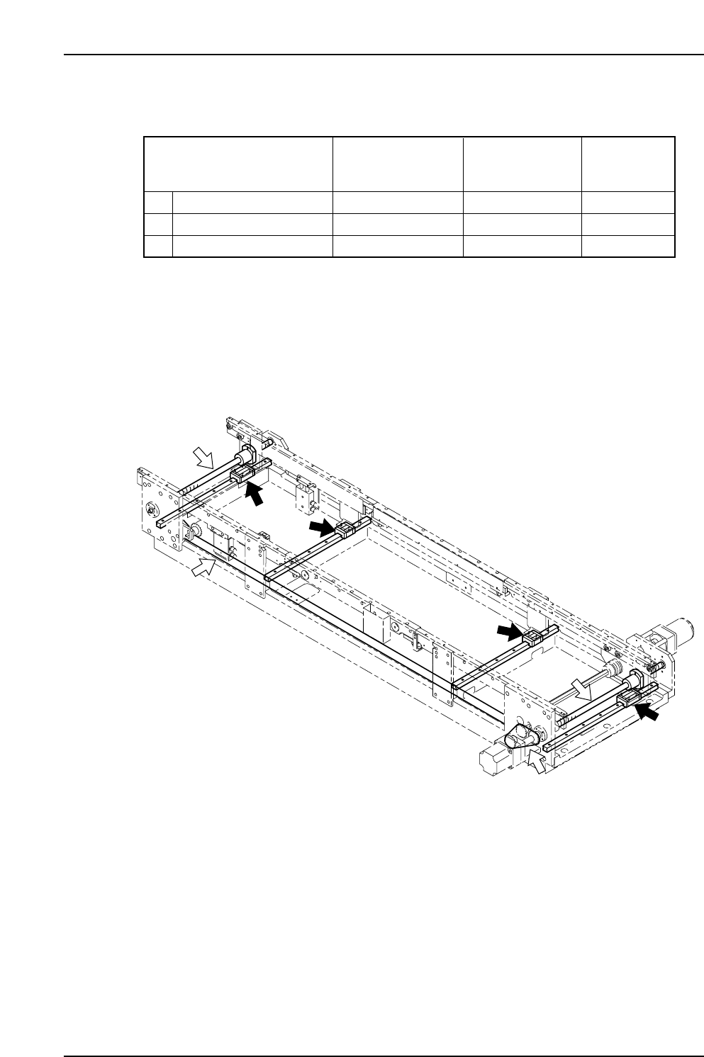 Part 3 Chapter 2 Lubrication Edition 3.0 3-2-7 XP-142E Mechanical Reference 2.4 Lubricating the T ape Cutter Arrow marks in the illustration indicate lubrication points. Black arrows indicate points where a grease gun is…