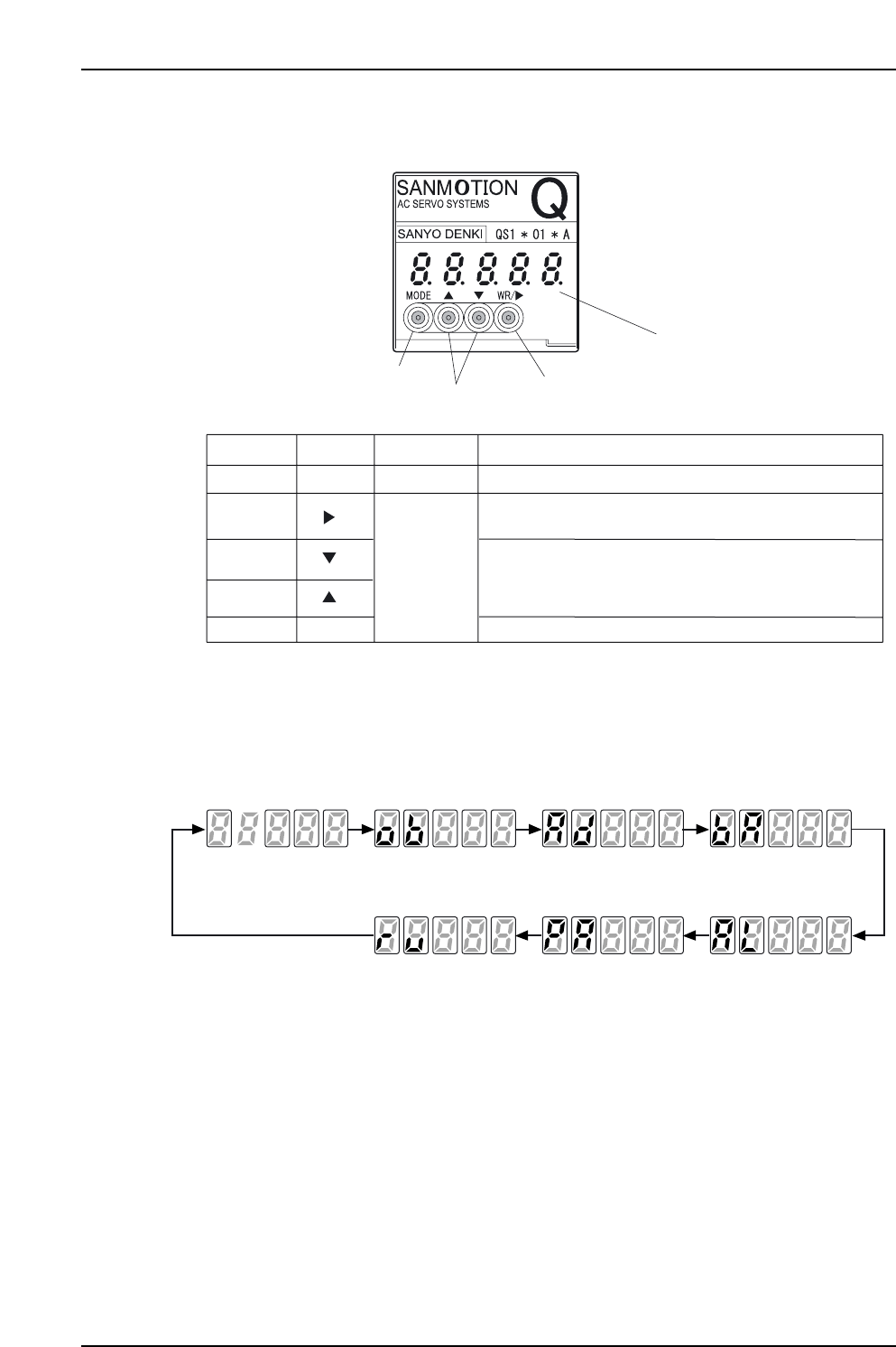 Status display mode 1. In this mode the servo amplifier status is displayed, as shown below. Note: Under some conditions, excessive load, regenerative excessive load, and battery warning status will be displayed when the…
