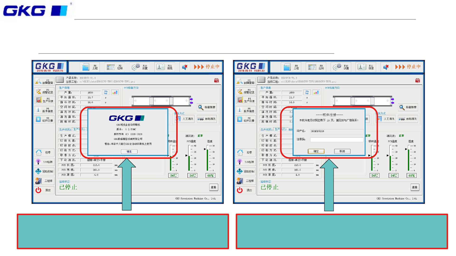 软件注册:GKG印刷机每台机器都会有对应的用户名,