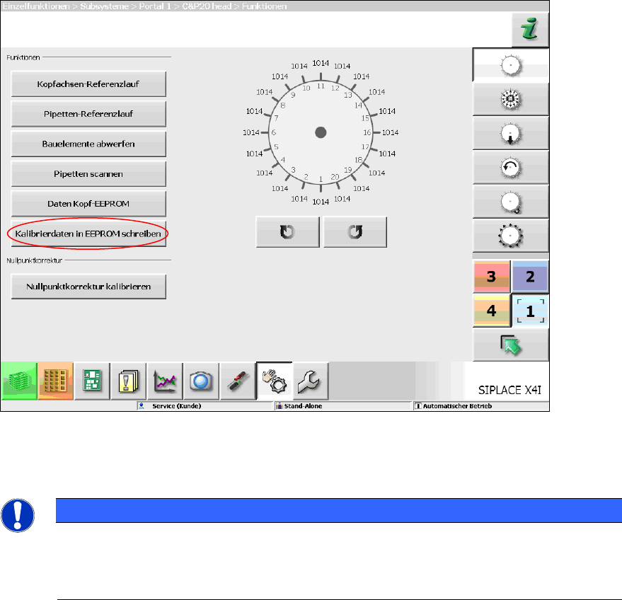 ► Führen Sie die markierte Funktion für jeden Bestückkopf aus.