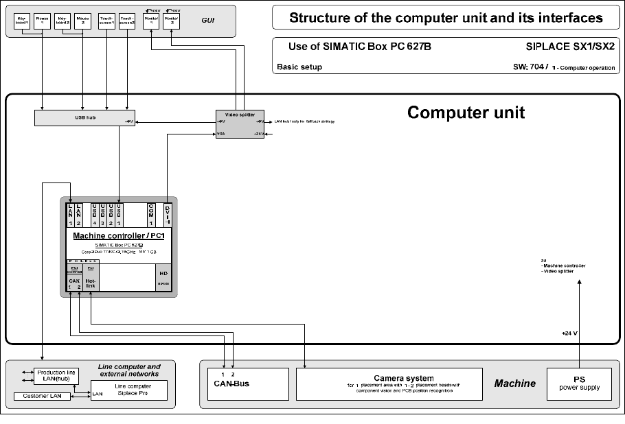 The following diagram shows the hardware components of the computer system for the SIPLACE