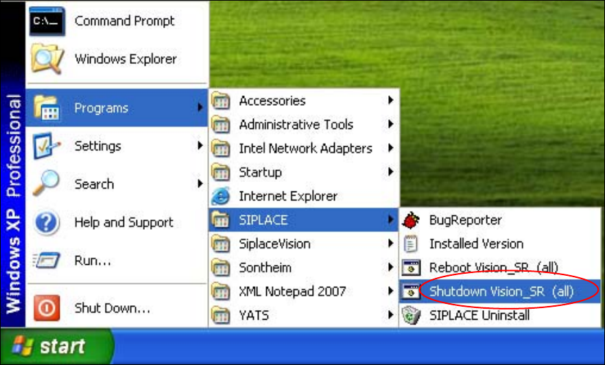 ► To do this, open the Start menu and select Programs Æ SIPLACE Æ Shutdown Vision_SR