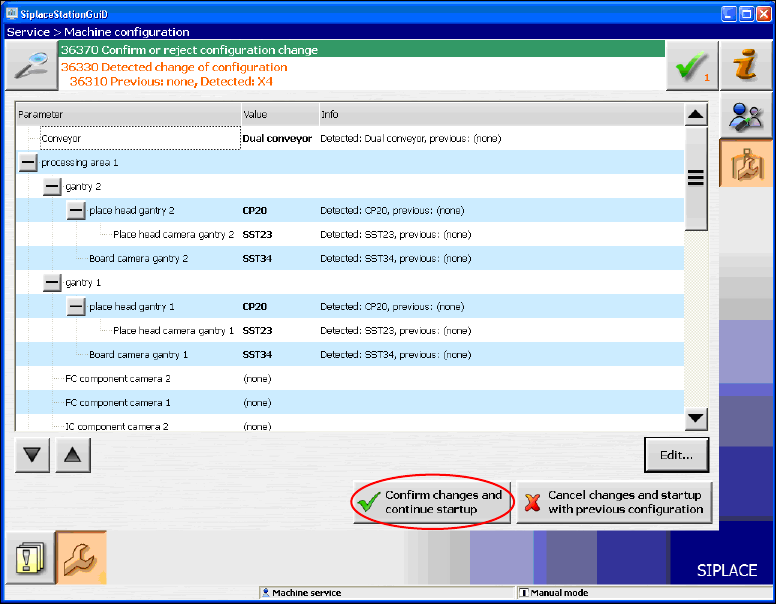 Station Software 704.03 SP1 / Installation Manual Ausgabe 10/2011 Edition 7.2 SX1/SX2 placement machine For the SX1/SX2 placement machine the following wi ndow is displayed, in which the Manual selection required note in…