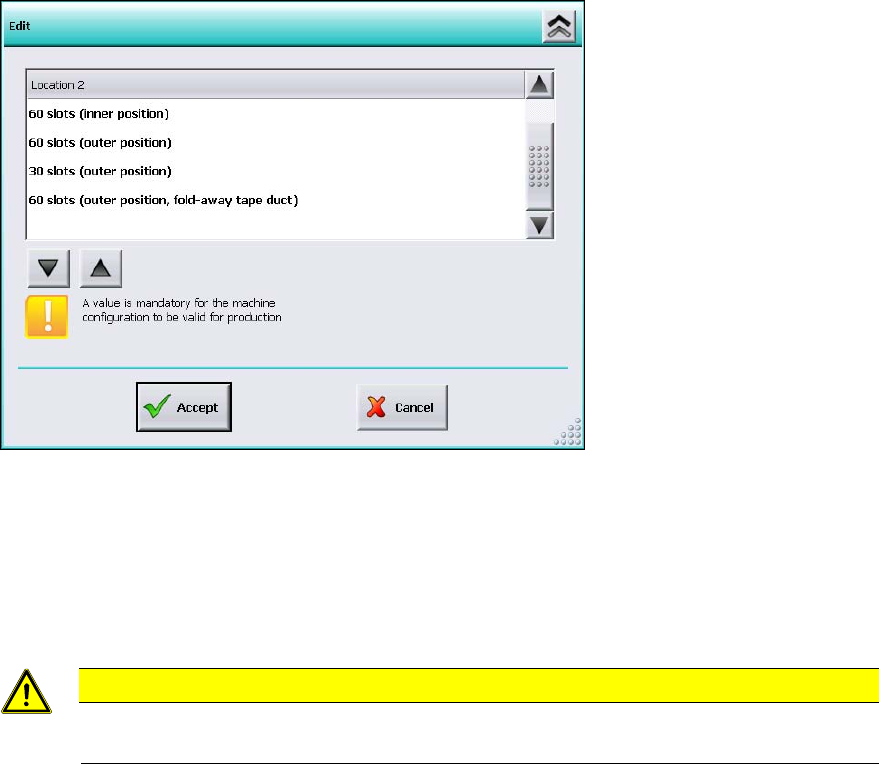 ► Select the 60 slots (outer position, fold-away tape duct) table configuration.
