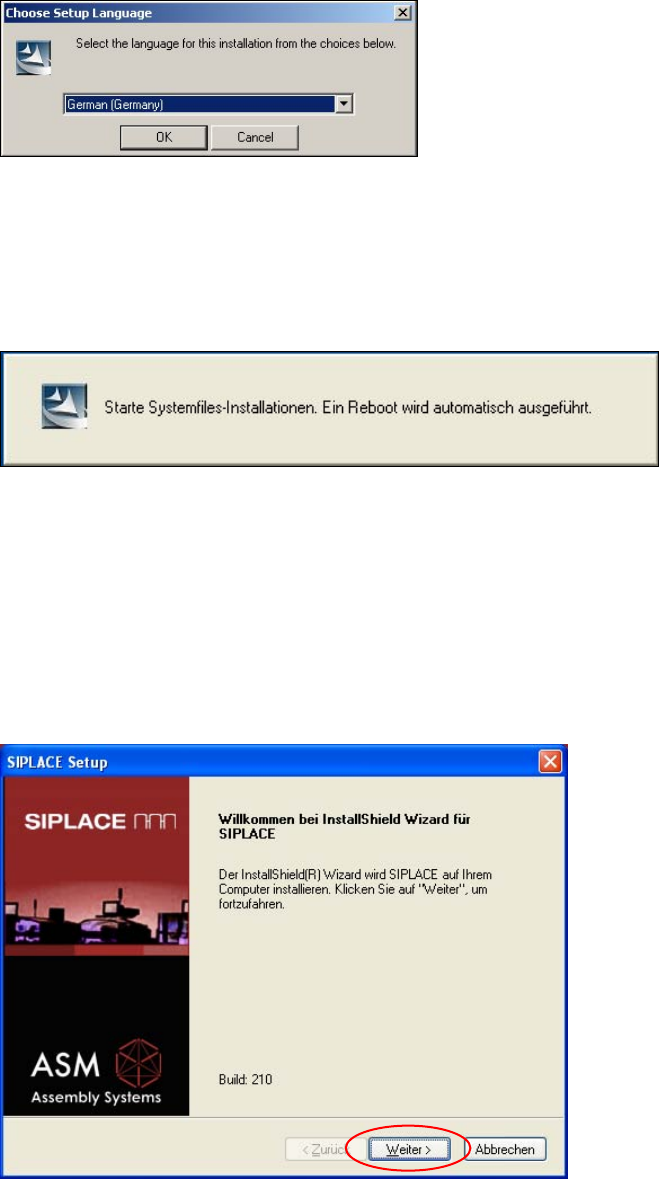 5.4 Installation der SIPLACE-Software (Stationssoftware 704.03 SP1)