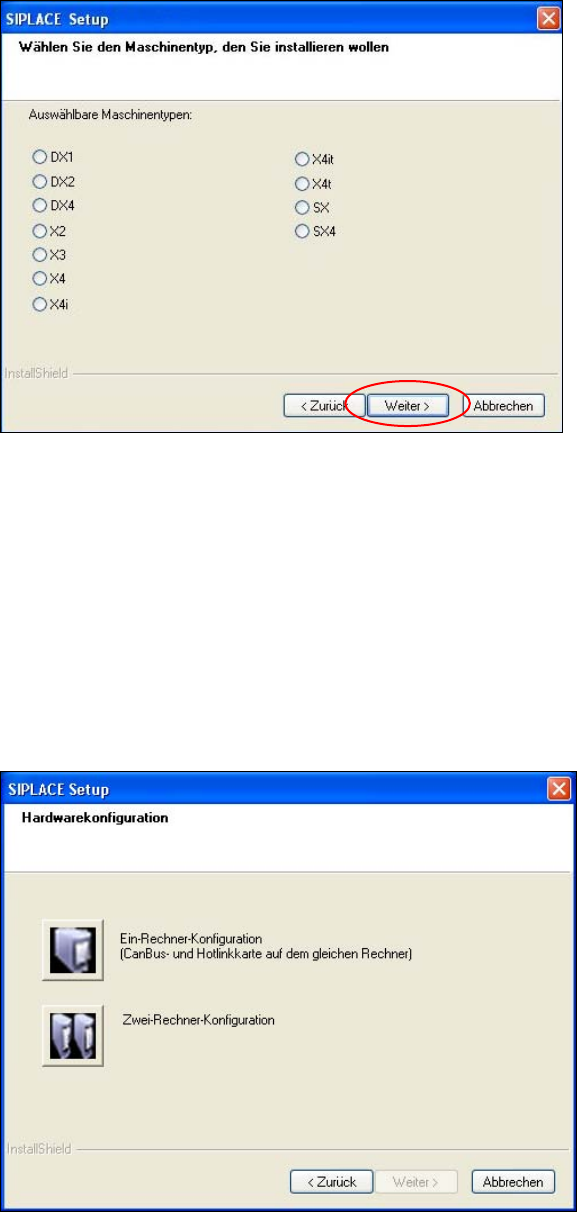 Stationssoftware 704.03 SP1 / Insta llationsanleitung Ausgabe 10/2011 Edition ► Klicken Sie auf die Schaltfläche Ein-Rechner-Konfiguration o der auf die Schaltfläche Zwei-Rechner-Konfiguration für Bestückautom aten der X…