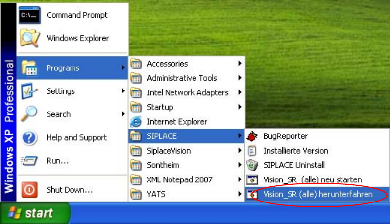 Einträge Programs Æ SIPLACE Æ Vision_SR (alle) herunterfahren.