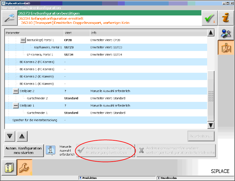 Beim ersten Hochfahren des Bestückautomaten SX4 müssen Sie in der Autokonfiguration bei