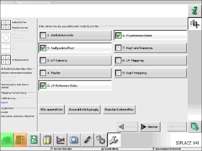 ► Wählen Sie die in der Abbildung markierten Kalibrierschritte aus und klicken Sie auf Weiter.