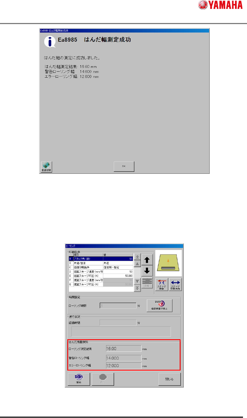 ーリング幅を測定できた場合は、「Ea8985:はんだ測定成功」メッセージ(図 4.8)にてローリング幅